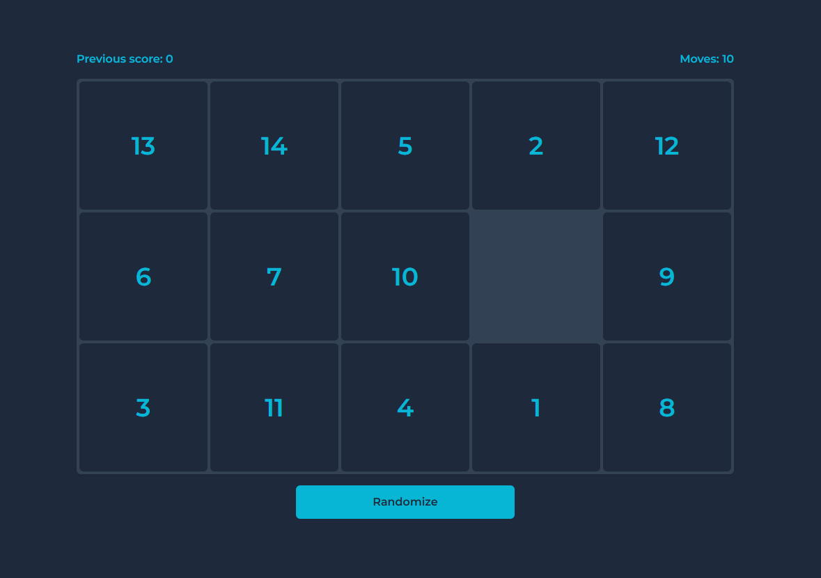 Solve the puzzle by moving tiles and getting them positioned in numerical order.