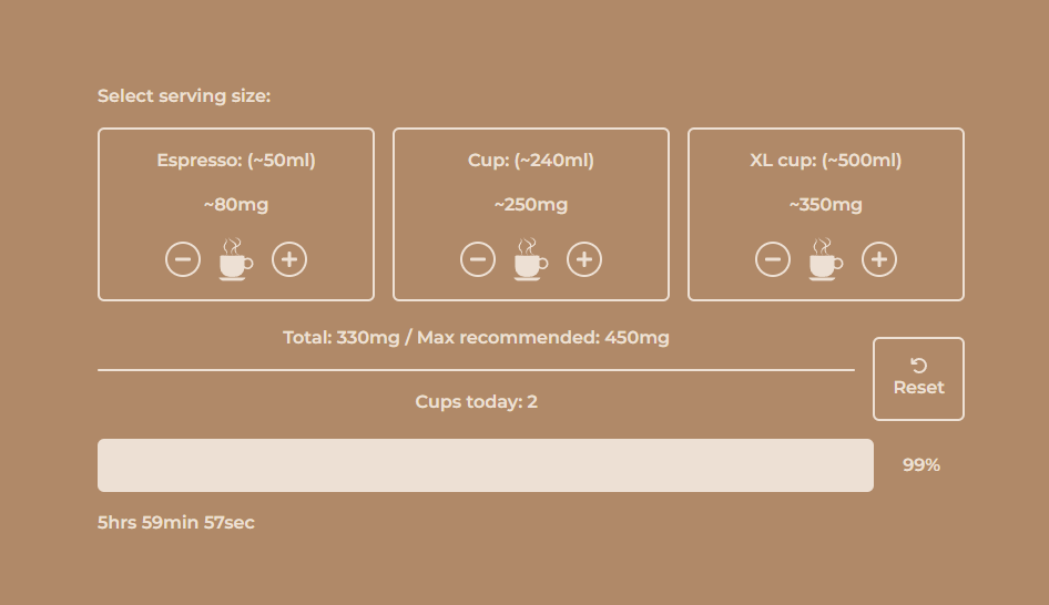 An app to track your daily coffee intake, calculate total caffeine consumption, and optimize it based on caffeine half-life.